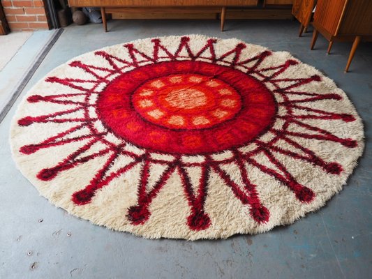 Runder Teppich In Rot Creme 1960er Bei Pamono Kaufen