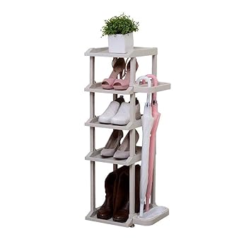Schmales Schuhregal Kunststoff Grau Mit Seitlichem Schirmstander